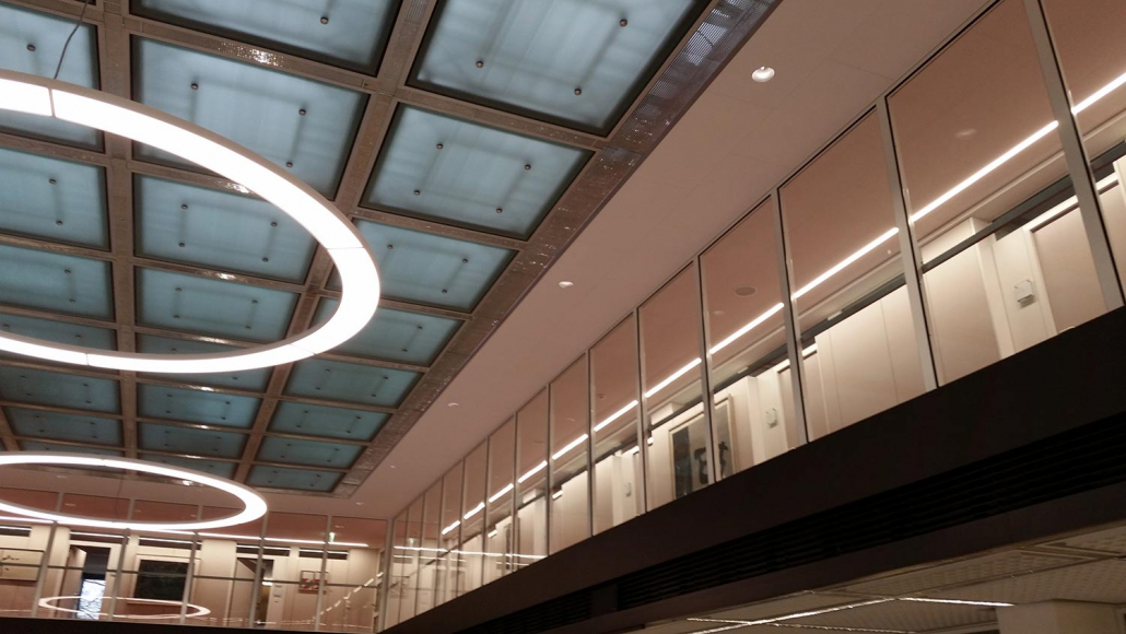 An der 2015 anstehenden Modernisierung und Brandschutzertüchtigung der Schalterhalle und angrenzenden Büroflächen des Nachkriegsgebäudes aus dem Jahr 1953 waren wir mit der Ausführung der Innenausbauarbeiten beteiligt