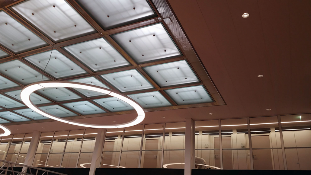 Die gelungene Ästhetik der Neugestaltung durch das Architekturbüro Bauer und Danner aus Ludwigsburg beweisen, dass ansprechendes Design, Brandschutzauflagen und nutzungsorientiertes Umgestalten vereinbar sind und sich nicht gegenseitig ausschließen. Die Räume zeichnen sich durch eine hohe Transparenz und dennoch optimierte Akustik aus.
